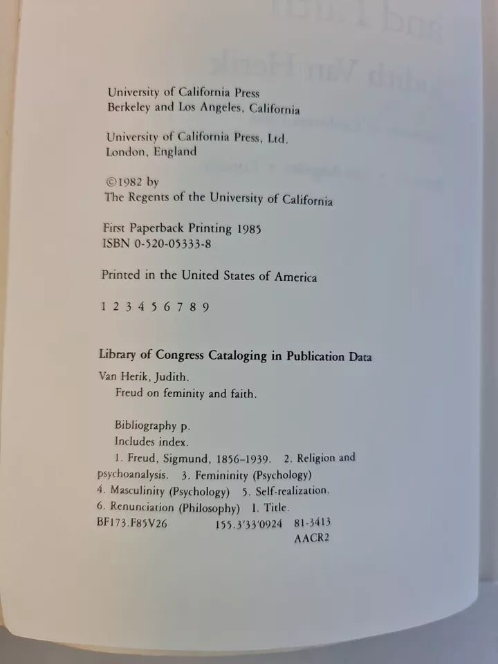 Freud on Femininity and Faith by Judith Van Herik (1985)