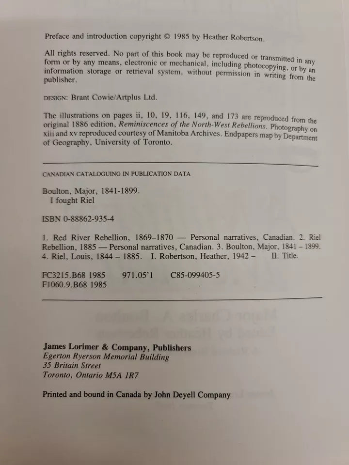 I Fought Riel: A Military Memoir by Charles A. Boulton (1985)