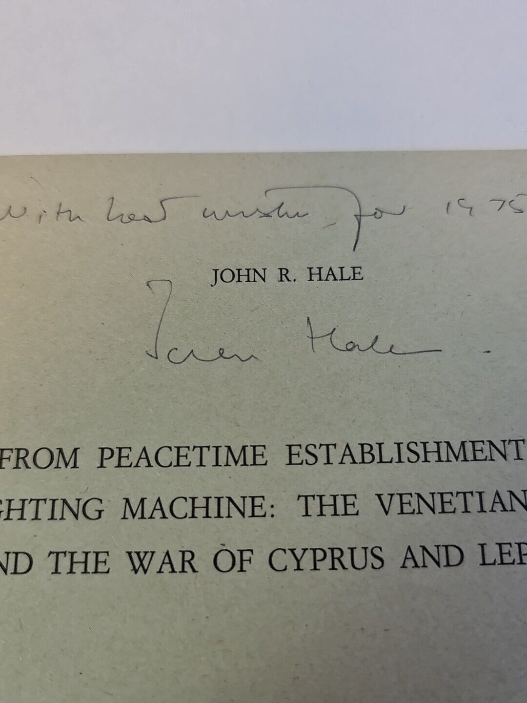 SIGNED Peacetime Establishment to Fighting Machine: Venetian Army.. by John Hale