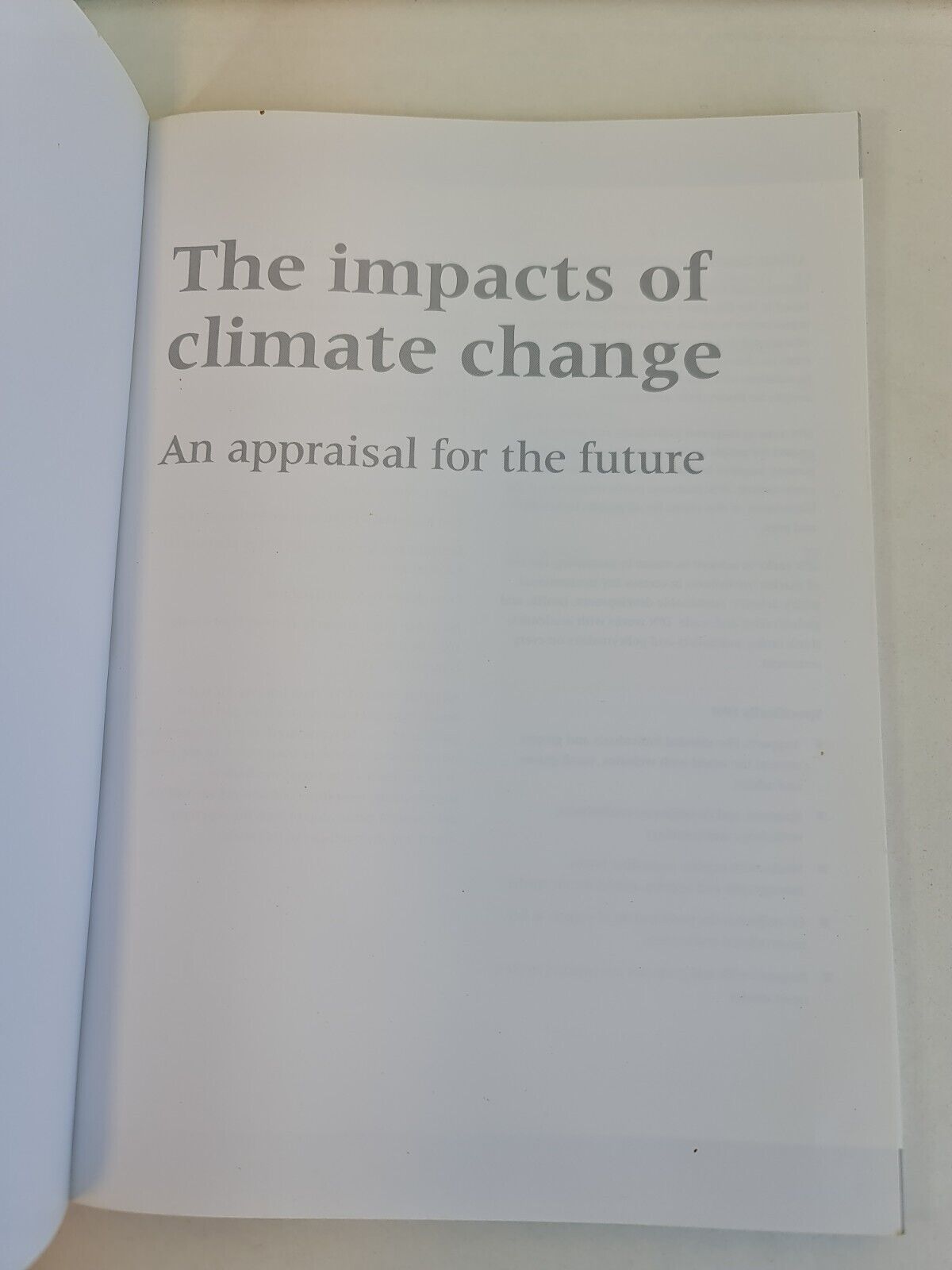 The Impacts of Climate Change: An Appraisal for the Future